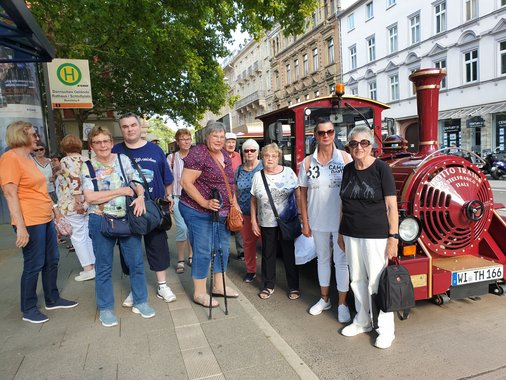Die nächste Aktion war eine Stadtrundfahrt mit der Stadtbahn “THermine“. Hierbei erfuhren wir viel Geschichtliches und Geschichten aus Wiesbaden. Es gibt hier 26 heiße Quellen. Berühmte Persönlichkeiten, die Wiesbaden besuchten waren: Fjodor Michailowitsch Dostojewski, Johannes Brahms, Johann Wolfgang von Goethe und Wilhelm Richard Wagner.